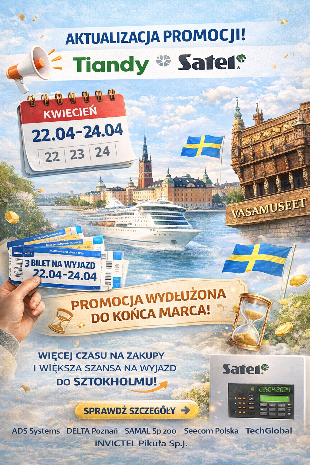 Jesteś fanem marki SATEL? Chcesz zwiedzić fabrykę największego producenta systemów alarmowych w Europie? A może chcesz poznać nowości technologiczne TIANDY, jednocześnie płynąc promem po Bałtyku w rejsie do Szwecji?